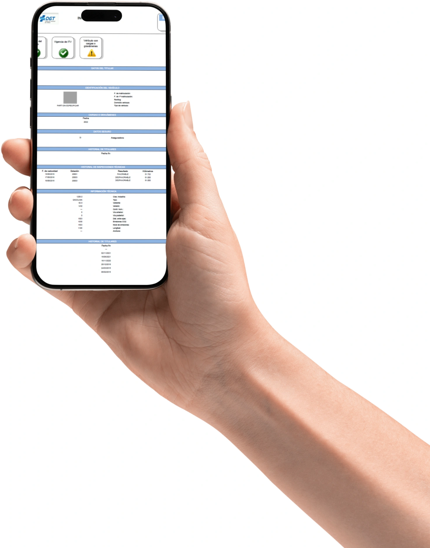 Incluye informe técnico del vehículo, fotos de puntos clave y recomendación final.